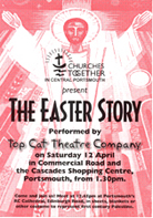 Churches Together in Central Portsmouth commissioned Top Cat to perform the Easter story - from Palm Sunday through to Good Friday - in the main shopping centre in Portsmouth. It started with a Palm Sunday-style procession from the Roman Catholic cathedral, along Commercial Road and into the Cascades shopping centre. More than 100 part icipants dressed themselves in Biblical-style clothes to follow three giant puppets of Jesus and two of his disciples.